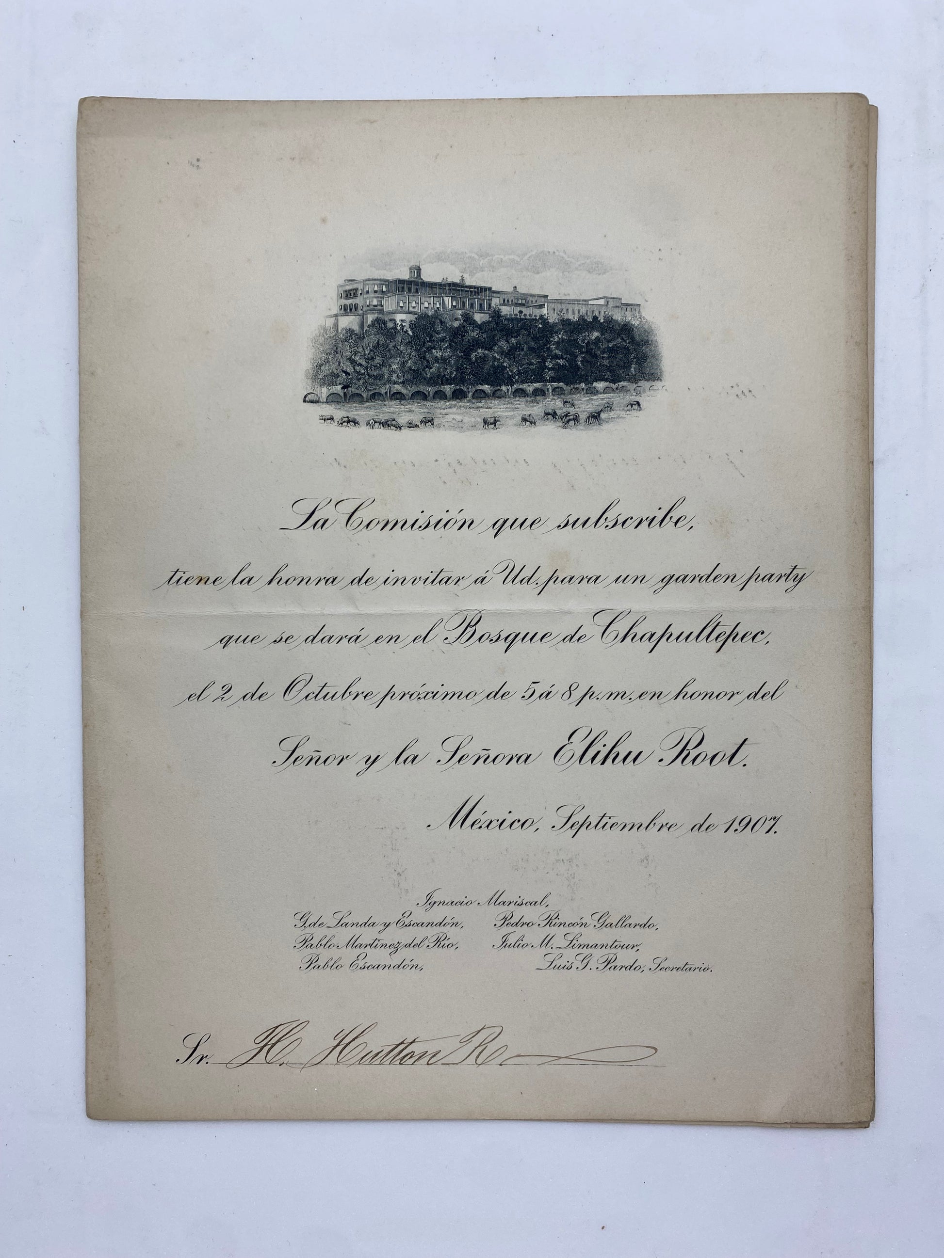 Antigua invitación personal dirigida al Sr con motivo de la visita del Sr Eliiot a Mexico